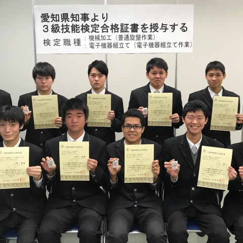 卒業を前に、機械科の上級資格取得者を集めて記念撮影をしました。合格...