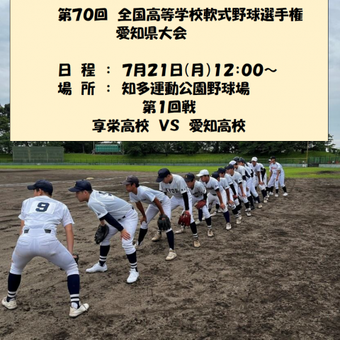 7月21日(月)から第70回全国高等学校軟式野球選手権愛知県大会が...