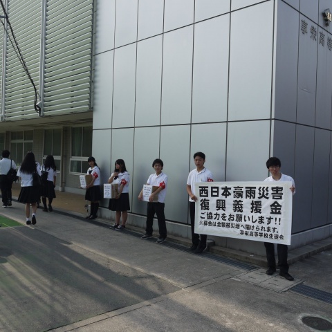 7月18日(水)、本校内にて西日本を中心とした豪雨災害に関する募金活動...