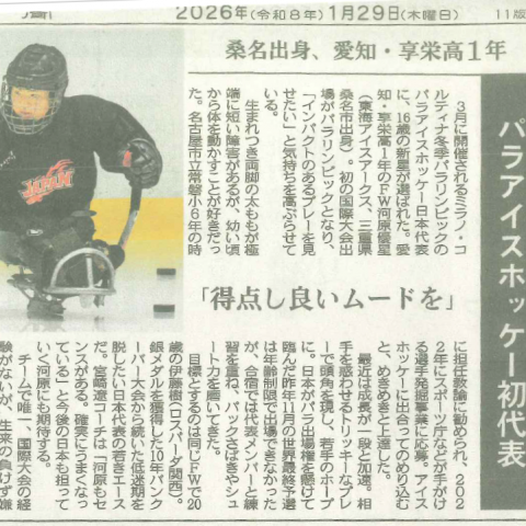 享栄高校1年生 河原優星くん パラアイスホッケー日本代表選出