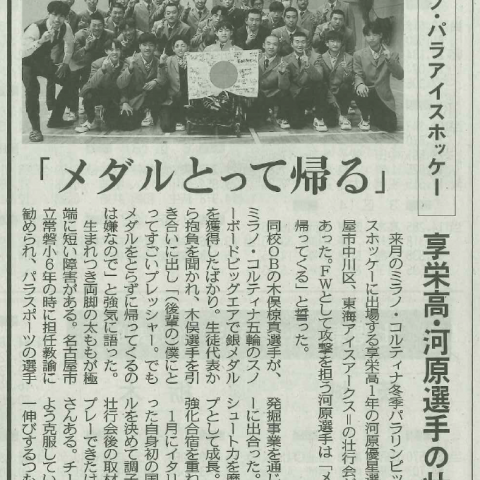 本日発行の中日新聞に2/9(月)に本校で行われた河原選手の壮行会が掲載さ...