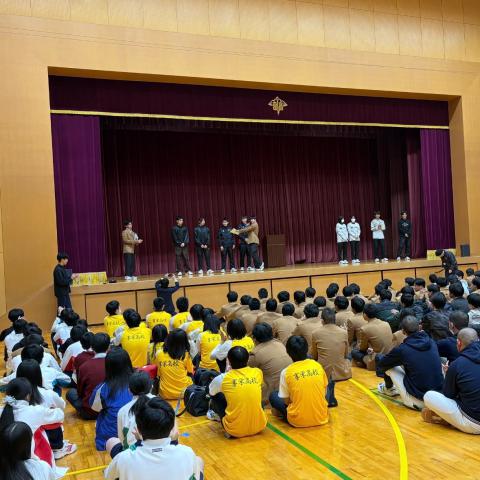 本日、本校体育館にて部活動の壮行会を行い、東海大会に出場するボクシ...