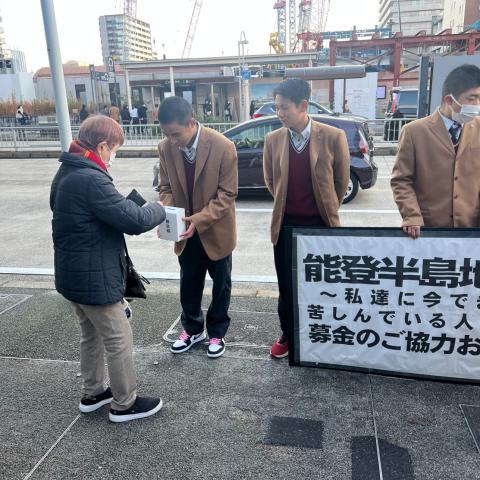 1月7日㈫桜山駅周辺にて、享栄高校生徒が能登半島の被災地を支援するた...