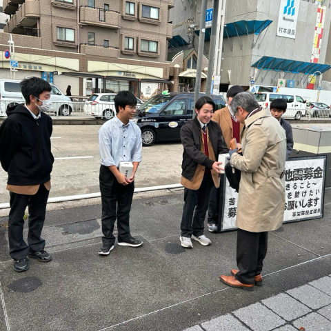 1月7日㈫桜山駅周辺にて、享栄高校生徒が能登半島の被災地を支援するた...