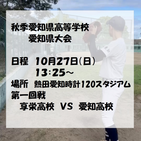 10月27日(日)から秋季愛知県高等学校 愛知県大会 軟式野球競技が...