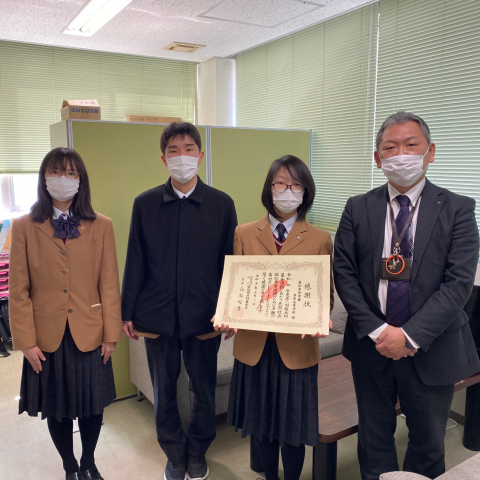 昨年11月11日(金)に本校で実施した赤い羽根共同募金活動に対して、愛...