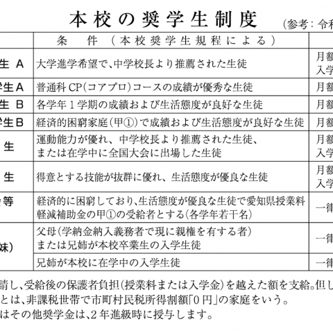 本校の奨学生制度