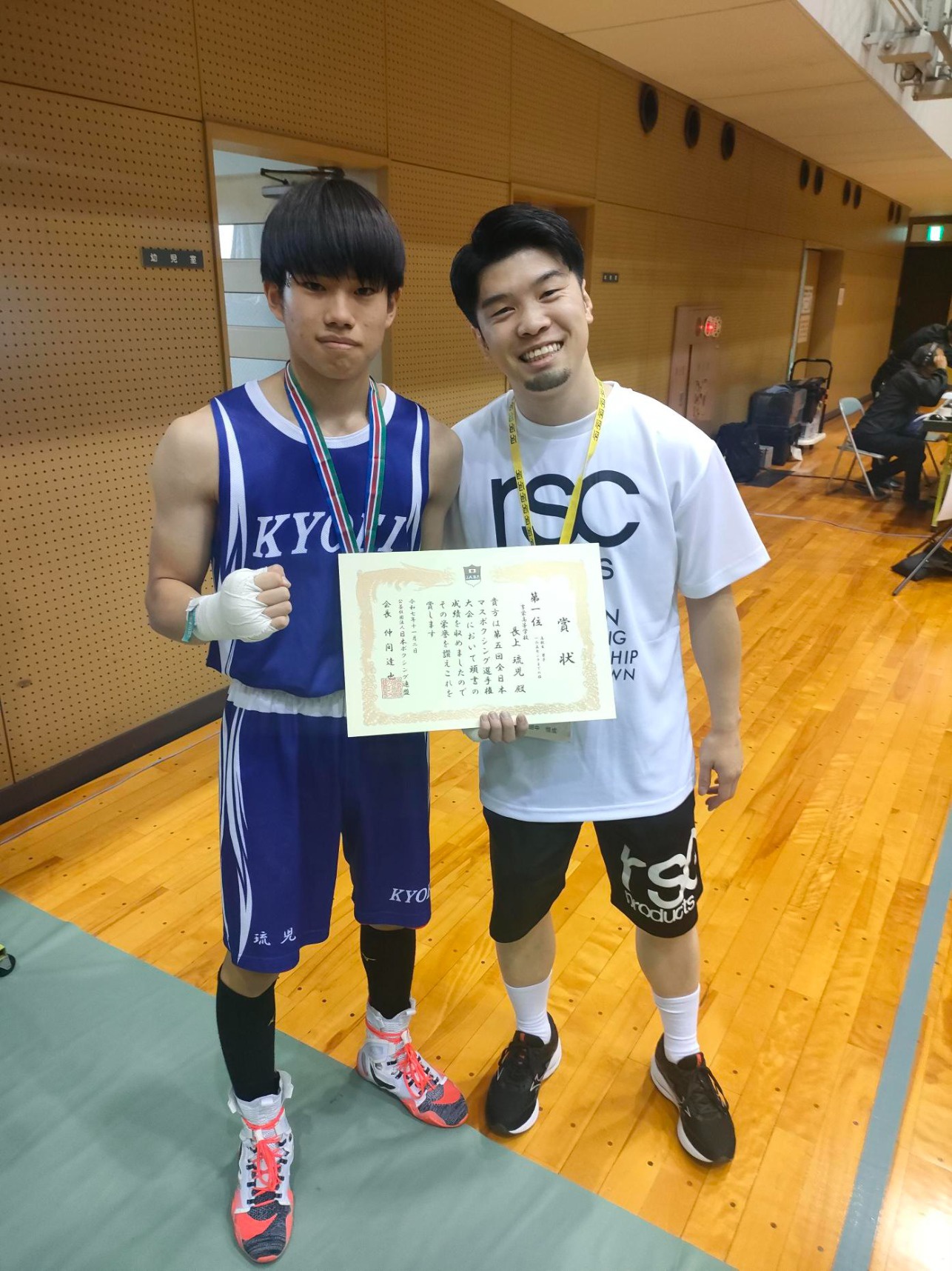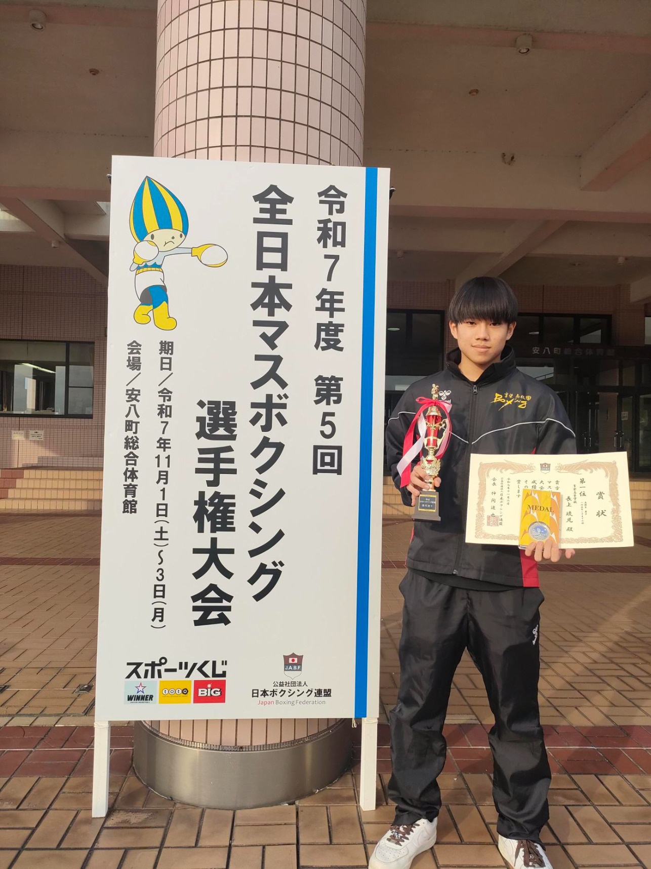 本校からは長上琉児選手が男子165以下の階級で優勝しました。