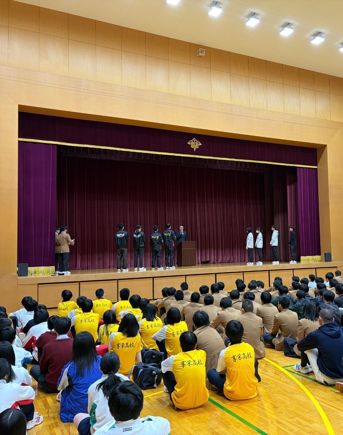 本日、本校体育館にて部活動の壮行会を行い、東海大会に出場するボクシング部とソフトテニス部、パラアイスホッケー日本代表候補に選出されている河原優星選手の応援を行いました。