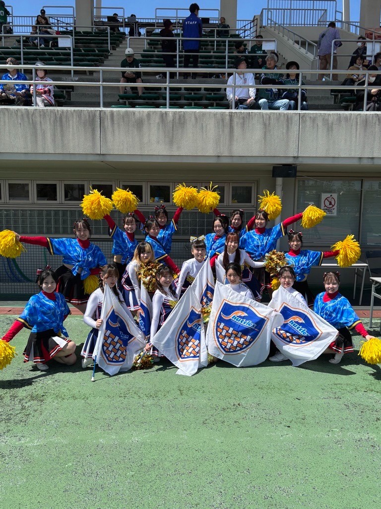 4月11日(土)にウェーブスタジアム刈谷にてNTTジャパンラグビー リーグワン2025-26ディビジョン2第11節、豊田自動織機シャトルズ愛知 vs NECグリーンロケッツ東葛戦のオープニングセレモニーと選手花道に卒業生の山本美咲さん(2024年卒 商業科 チアリーディング部)が所属する豊田自動織機チアダンス部SPINNERSさんとのコラボに、本校のチアリーディング部が2度目の出演をいたしました。