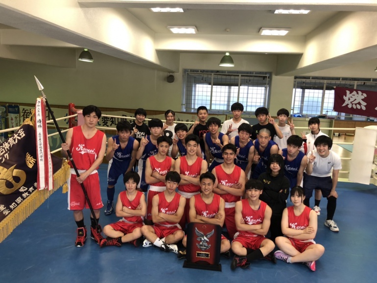 今大会、男子は8階級中7階級が決勝に進出し、女子を含め4名の選手が優勝を収め、ライトフライ級の近藤君、フライ級の村田君が7月から高知県で行われる全国大会出場を決めました。また、ウェルター級の喜納君は6月に行われる東海大会の結果次第で全国大会出場が決まります。今回惜しくも優勝を逃した選手たちも、自分のため、応援してくれる仲間のために一生懸命頑張りました。その結果として、総合優勝することが出来ました。今後とも享栄ボクシング部の応援をよろしくお願いします。