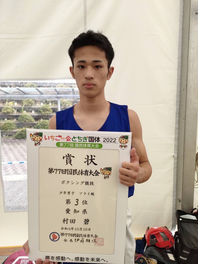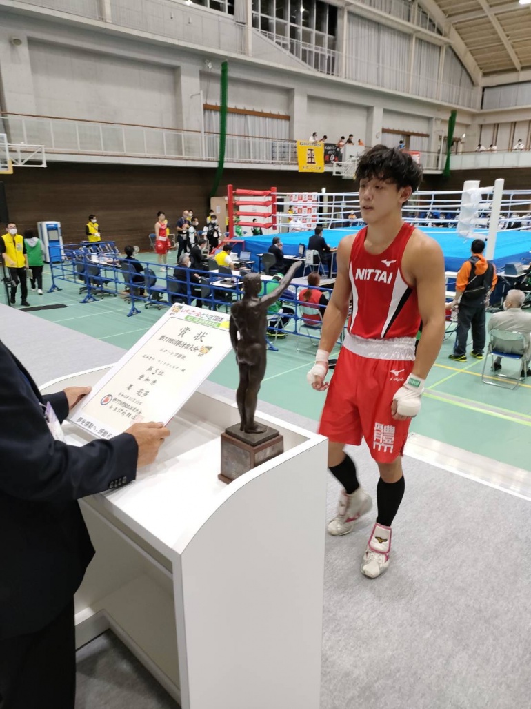 3年生の村田君にとって、今大会が高校生活最後の大会となりました。初戦から安定したボクシングを展開し、2回戦、3回戦と順調に勝ち進むことが出来ました。迎えた準決勝の相手は、前回のインターハイで敗れた相手との対戦となりました。これまでの自分を超えるために、ボクシング人生を懸けて全力で戦いましたが、結果は惜しくも判定で敗れました。