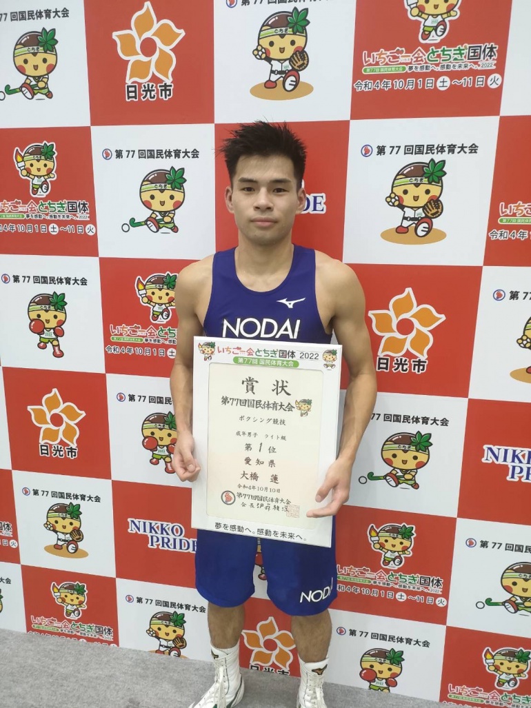 10月6日(木)から10日(月)において、栃木県日光市大沢体育館にて第77回国民体育大会ボクシング競技が行われました。結果は以下の通りです。