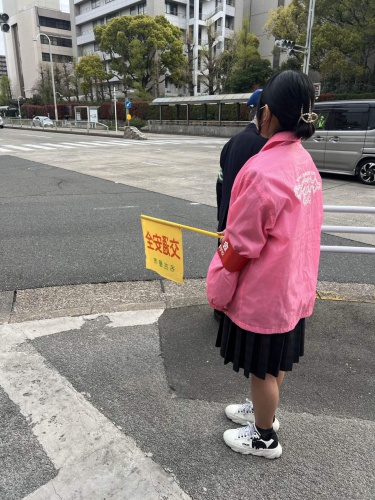 新年度が始まってから初めての立哨活動となりましたが、生徒たちは朝早くから自主的に集合し、通学路に立って交通安全を呼びかけました。