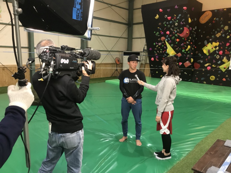 12月14日(木)18時10分から放送されたNHKの「ホットイブニング」で、3年10組の細江 樹さんが「人気急上昇!スラックラインとは」という内容で出演しました。名古屋市内にあるスラックラインジムにて生中継で、細江さんの世界一の技術を披露し、スラックラインの魅力を堂々と伝えることができました。