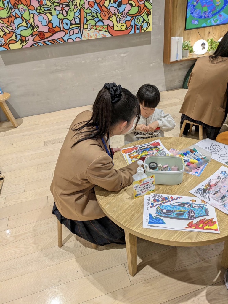 子どもたち一人ひとりの様子に目を向けながら声をかけ、完成まで寄り添う姿が多く見られました。生徒にとっては、作品を制作する側としてだけでなく、「伝える側」「支える側」として活動する経験となり、コミュニケーション力や協働性、責任感を実感的に学ぶ機会となりました。