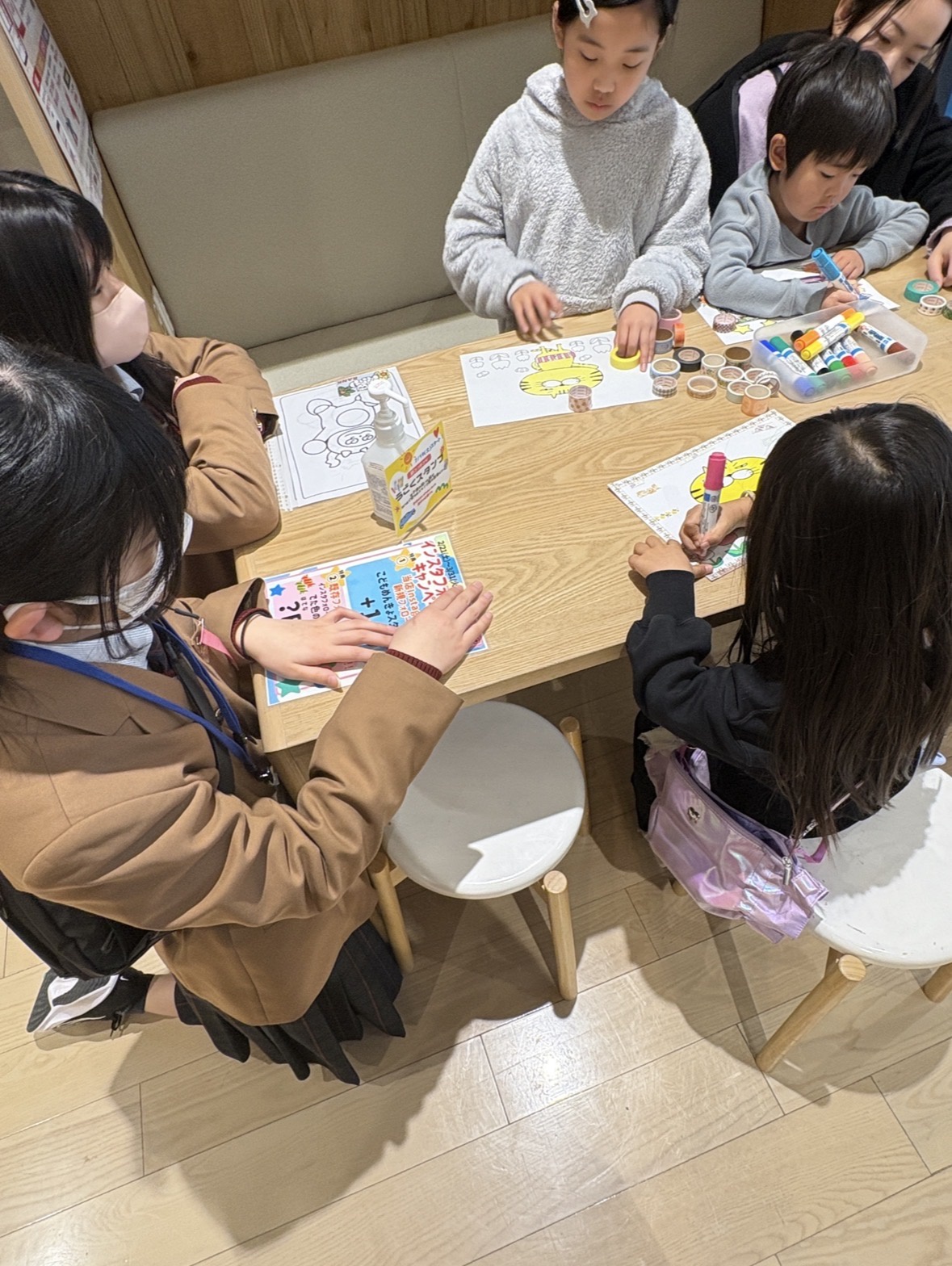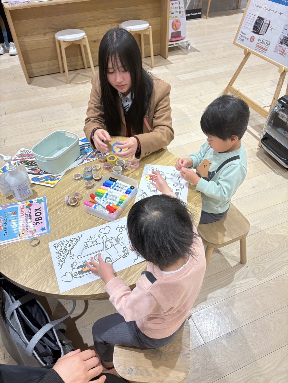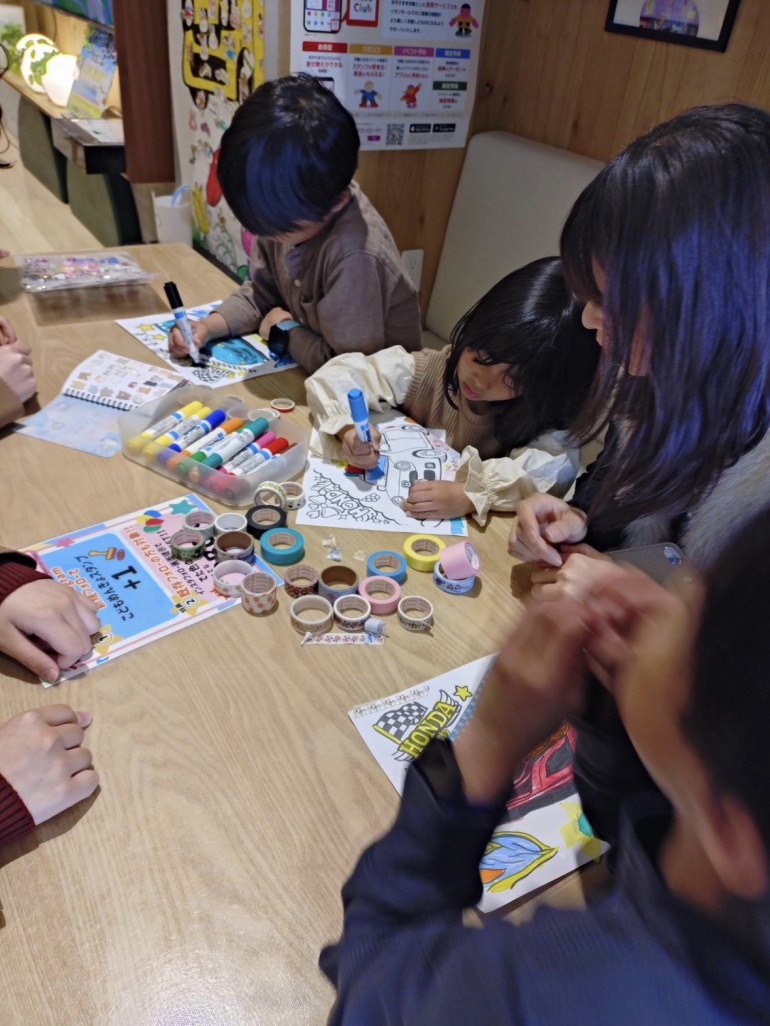ワークショップでは、本校生徒が来場した子どもたちに対し、マスキングテープアートの作り方を説明したり、制作の補助を行ったりする役割を担当しました。