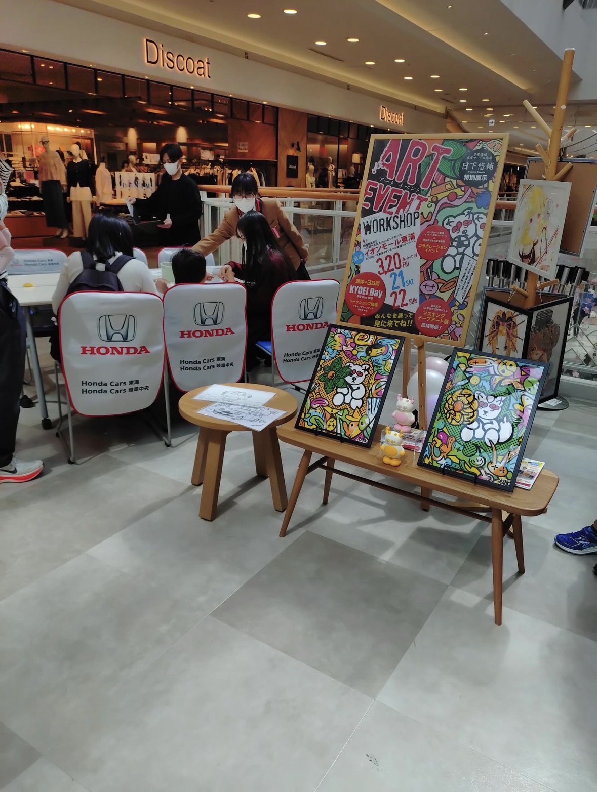 令和8年3月からホンダカーズ東海様のご協力のもと、イオンモール東浦ショールームにて授業で制作したマスキングテープアート作品の展示会を開催しております。