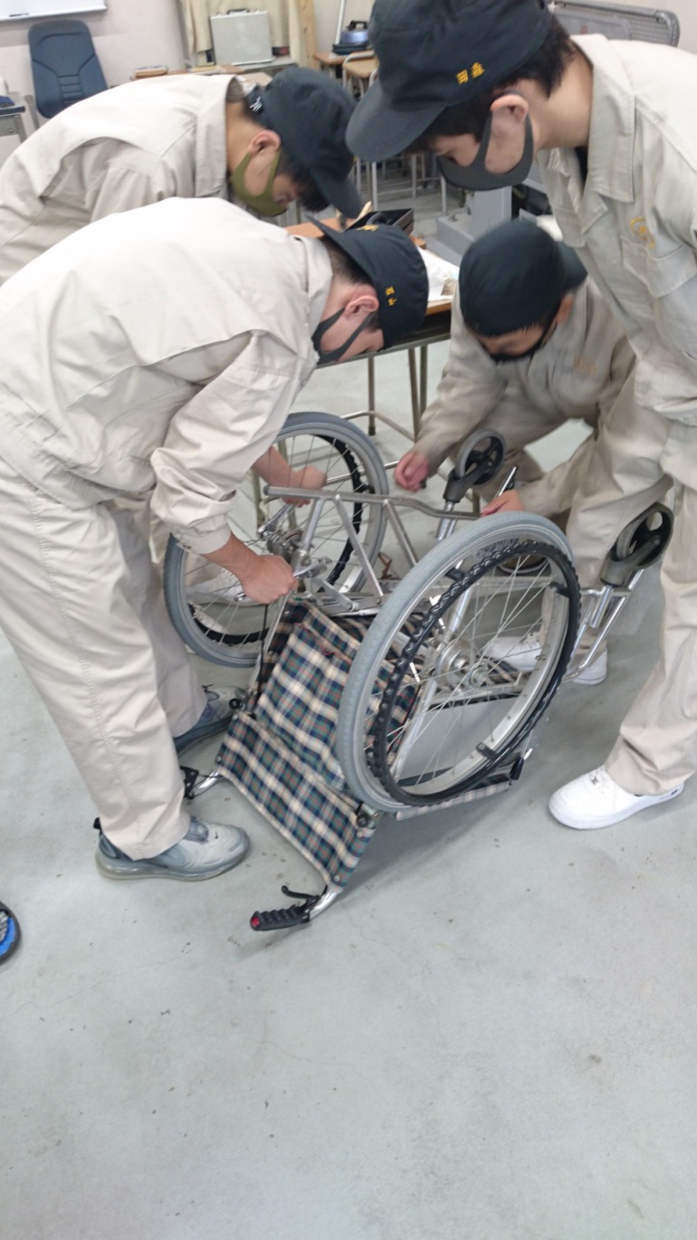 2・3年生より有志を募り、昨年度より2台多い4台の車いすを修理・整備しました。必要としている人たちのために授業で身に着けた技術を活かすこと、また物の大切さや国際感覚、奉仕の精神を学ぶことのできるこの活動をこれからも継続していきます。