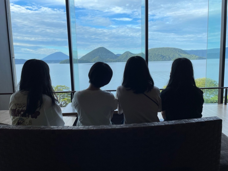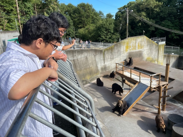 サイロ展望台と有珠山から眺める洞爺湖は、天気が良く絶景の景色を眺めることができました。その後訪れた熊牧場では、美味しそうに餌を食べる可愛らしい熊の姿に心が癒されました。