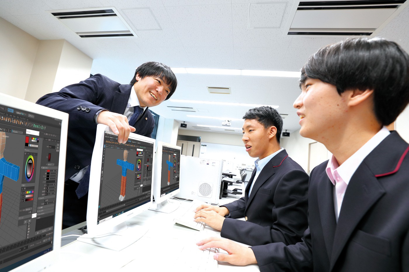 パソコンやタブレット端末などのデジタル機器を活用するには、正しい知識と目的に沿った技術を身に付けなければなりません。IP専攻ではそういった情報技術に関する知識と技術を基礎から学ぶためにWスクール制度を活用し、情報処理分野においてプロへの第1歩とされる「ITパスポート試験」(国家資格)に合格することを目標としています。情報セキュリティやネットワークといったIT活用力をITパスポート試験の学習を通して身に付けることができます。また、マルチメディア実習としてプログラミングも学習しています。