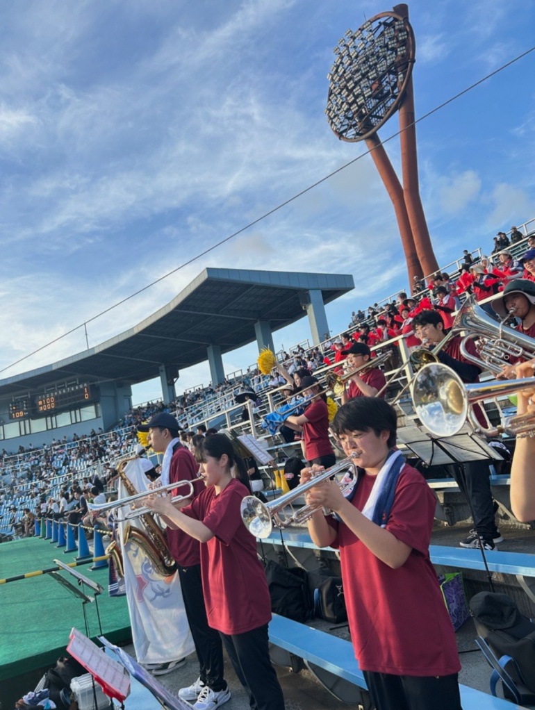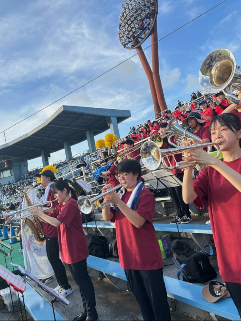 7/23(水)岡崎レッドダイヤモンドスタジアムへ硬式野球部の応援に行ってきました。 グラウンド、スタンドで全力を尽くす選手の試合中の真剣な姿や、最後まであきらめない姿勢に勇気と感動をもらい今回の応援演奏を通じて沢山のことを学ぶことができました。 私達吹奏楽部にとっても忘れられない1日となりました。 応援の機会をいただき、本当にありがとうございました! お互いそれぞれの舞台でベストを尽くしていきます。 また応援演奏できる日を楽しみにしています !