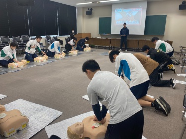 3月5日(水)本校にて各運動部代表生徒15名を対象とした救命講習会を実施しました。 参加した生徒たちは、真剣に本校指導員の指示に従い心肺蘇生とAEDの使い方、直接圧迫止血法を学びました。