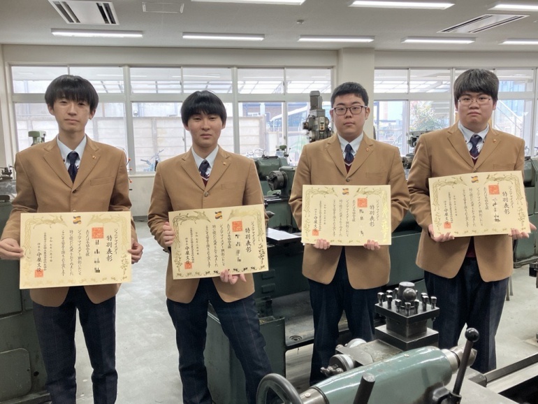 本校の機械科に在籍する3年生4名の生徒が、全国高等学校長協会主催「ジュニアマイスター顕彰」特別表彰を受賞しました!