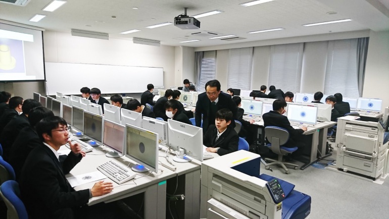 夏に行われる、機械加工(普通旋盤作業)の技能検定と、「溶接甲子園」とも言われる全国選抜高校生溶接技術競技会に向けて、機械科の実習室は生徒たちの熱気で一杯です。