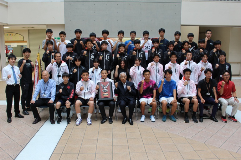 ソフトテニス部 長屋優斗選手・榊原雅翔選手、ボクシング部 山内元選手は、7月に長崎県で開催されるインターハイに出場します。 また、ボクシング部 桐原歩夢選手・竹内優司選手は、東海大会に出場します。 その報告会が行われ、理事長より激励の言葉をいただきました。