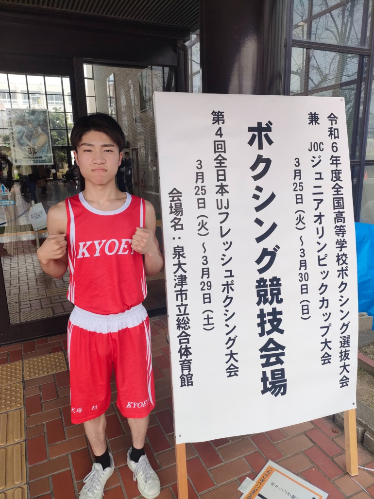 3月25日(火)から30日(日)において、大阪府泉大津市の泉大津市立総合体育館にて、第36回全国高等学校ボクシング選抜大会兼JOCジュニアオリンピックカップ大会が行われました。本校から東海高等学校新人大会で優勝した犬塚君(2年生)が出場しました。