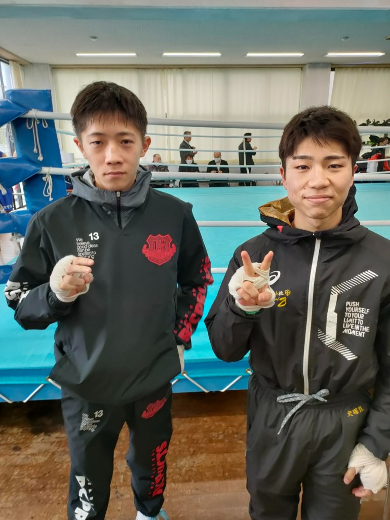 ライトフライ級桐原歩夢(1年)とフライ級犬塚烈(2年)が出場します。