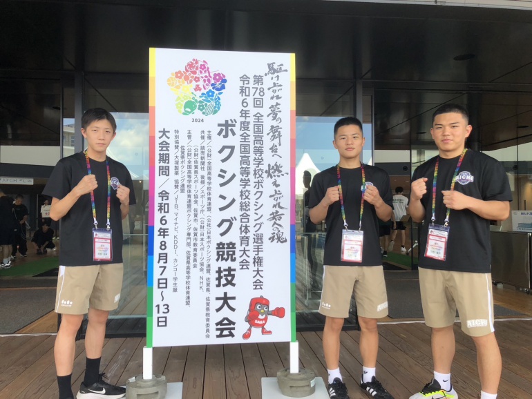 2024年08月07日(水) 部活動 学校ニュース ボクシング部からのお知らせ 明日から佐賀県で令和6年度インターハイボクシング競技が始まります! 出場選手 P級 1年5組 桐原歩夢 B級 3年5組 山内元 W級 3年12組 竹内優司 日頃の成果を全力で出してきます! 応援よろしくお願いします。 (写真は、SAGAサンライズパークにて。明日、こちらの会場で試合となります。) <開会式の様子>
