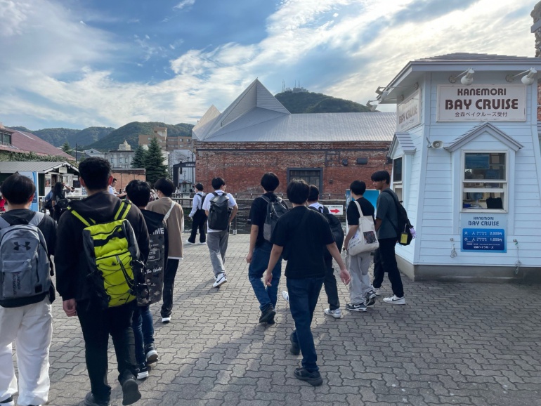 2024年09月04日(水) 学校行事 学校ニュース 修学旅行 1班 2日目 今日はクラスごとに分かれてエスコンフィールドHOKKAIDO、白い恋人パーク、余湖農園に行きました。各クラス楽しそうな様子が見られ、充実した時間を過ごすことができました。 午後からは小樽の市内観光を行い、食事や買い物を楽しみました。 明日は尻別川でラフティングを行います。