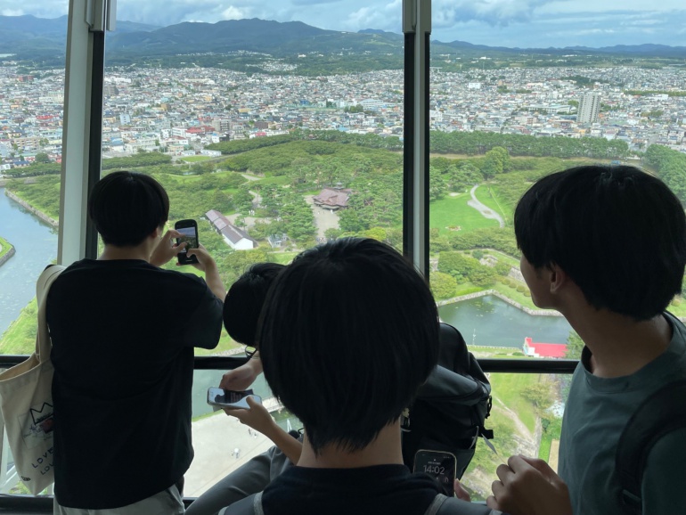 2024年09月02日(月) 学校行事 学校ニュース 修学旅行IAコース 8日目 洞爺湖から函館にかけて観光してきました。大沼国定公園では晴天の中、木々の緑と湖の青が映える景勝地でお弁当を食べました。その後、函館に移動して五稜郭や赤レンガ倉庫で、観光やショッピングを楽しみました。接客マナーを学ぶこともでき、有意義な1日を過ごすことができました。 最後に訪れた函館山から見た夜景は、一生心に残る美しさがありました。
