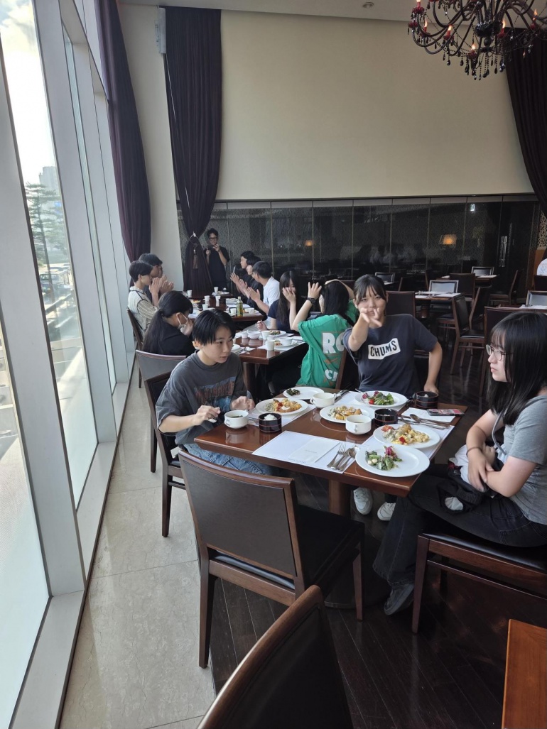 生徒は朝から日本人好みのバイキングをたくさん食べています。今日は韓国研修メインの延世大学生との交流を実施します。